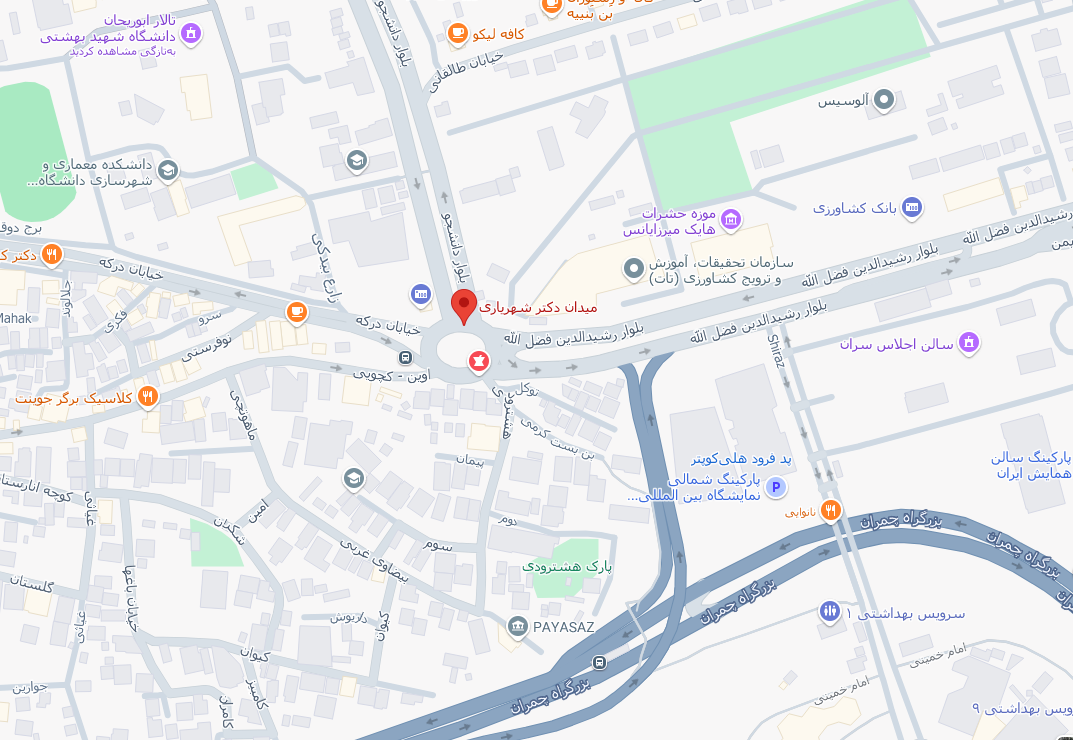 آدرس: بزرگراه شهید چمران - خیابان یمن - میدان شهید شهریاری - بلوار دانشجو - دانشگاه شهید بهشتی - مرکز همایش های بین المللی
